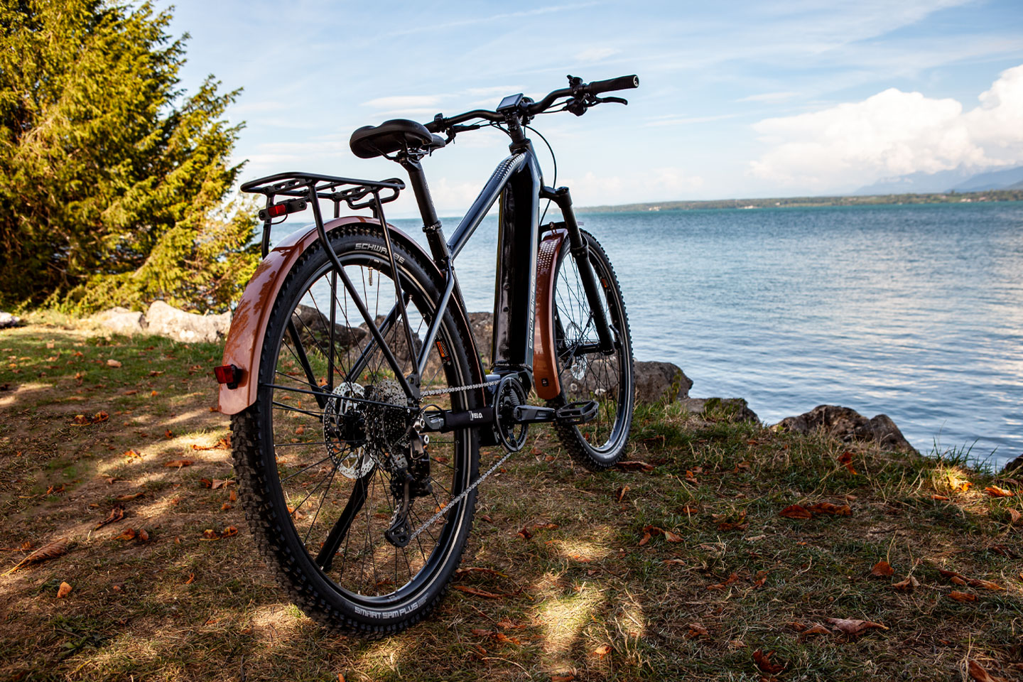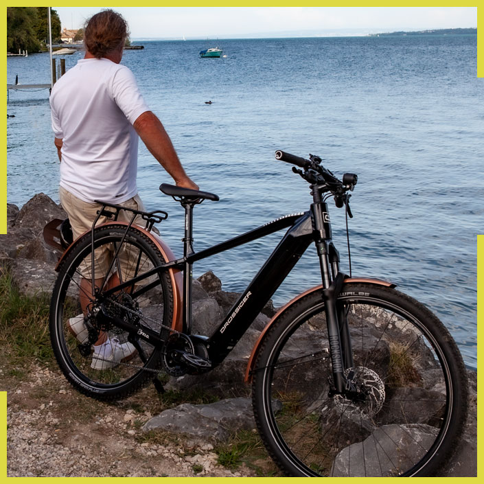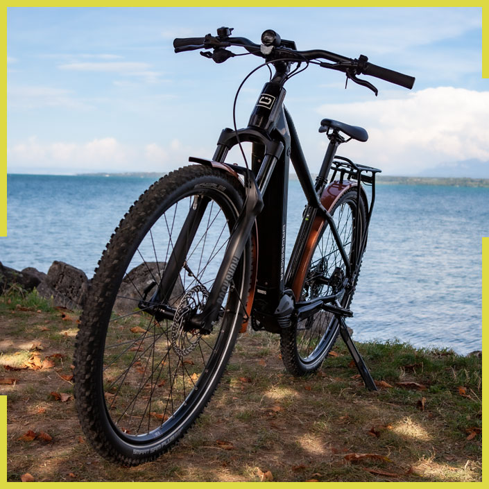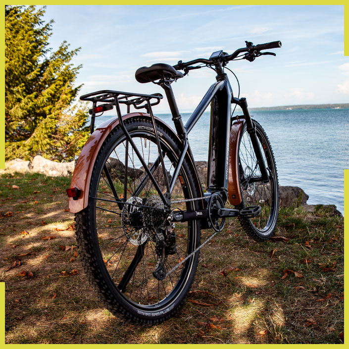 Das Ride.E SUV ist die perfekte Kombination aus einem Mountainbike (MTB) und einem Trekkingrad. Wir haben einen robusten Mountainbike-Rahmen mit einer Federgabel, breiten Reifen und mit praktischen Funktionen aus dem Trekkingbereich - wie Gepäckträger, Schutzblechen und Licht. Diese Kombination ermöglicht es, die Vorteile von Gelände- und Straßenfahrten zu vereinen. Egal, ob du dich auf rauen Pisten oder in der Stadt befindest, unser SUV bietet dir die perfekte Balance zwischen Fahrsicherheit und Komfort. Das macht es zu einem großartigen Begleiter für Reisen oder den täglichen Gebrauch. Unser Ride.E SUV fühlt sich auf jedem Terrain zuhause. Ob du durch die Stadt cruist, auf unbefestigten Wegen unterwegs bist oder deine nächste große Reise planst, dieses vielseitige Fahrrad ist dein zuverlässiger Begleiter. Mit dem Ride.E SUV kannst du die Freiheit des Radfahrens in vollen Zügen genießen, egal wohin dich deine Abenteuer führen.